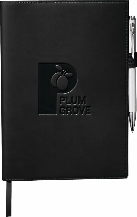 The 6 x 8.5 FSC Mix Pedova™ Refillable Journal comes with 80 sheets of white lined FSC Mix paper and features a unique refillable design, with extra paper (9091-98RF) available to order separately. Its cover is constructed from luxurious Italian UltraHyde materials, letting you take notes and record ideas with style. This convenient notebook has a built-in ribbon page marker to hold your place, plus a stretchy elastic pen loop. Pen is not included.